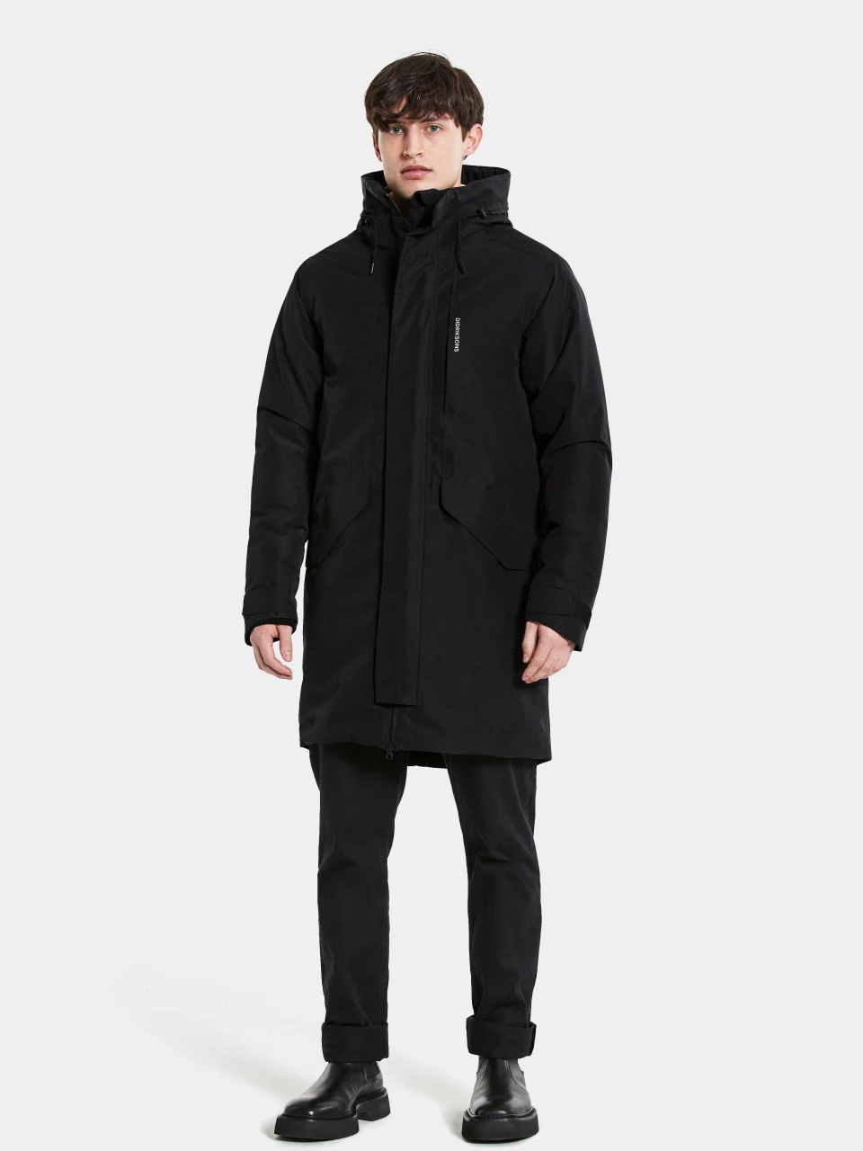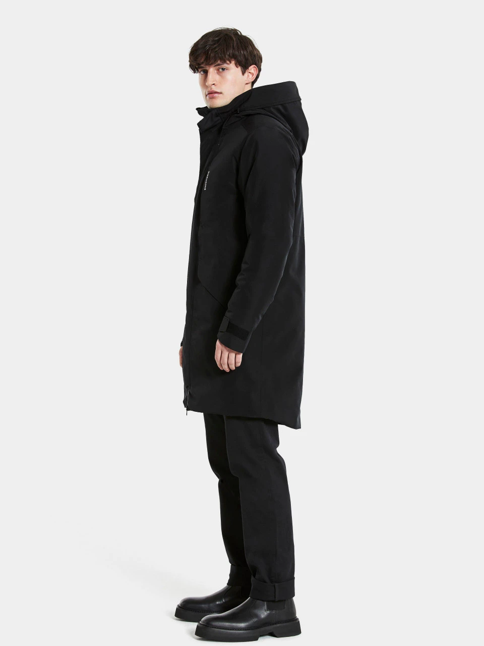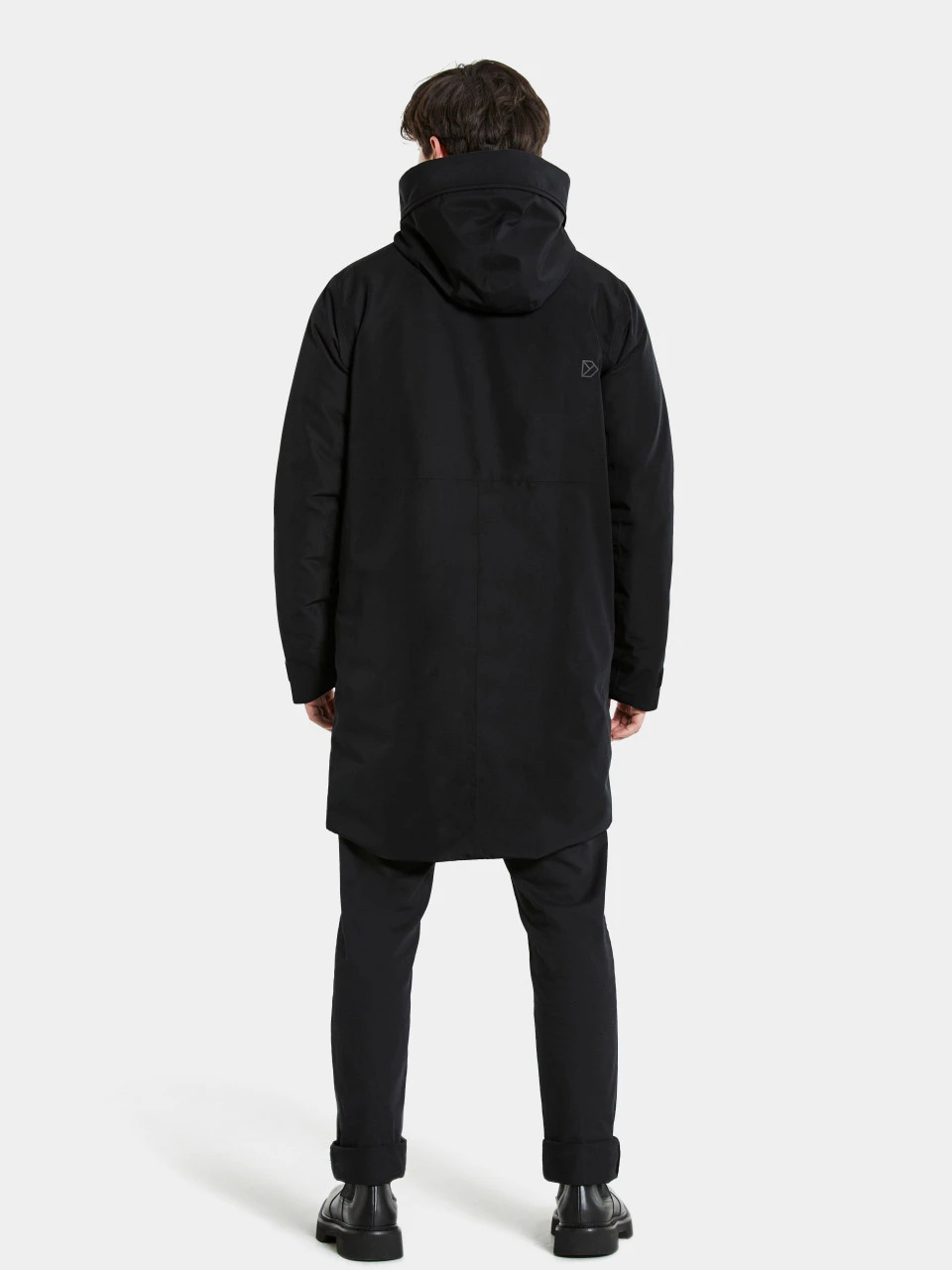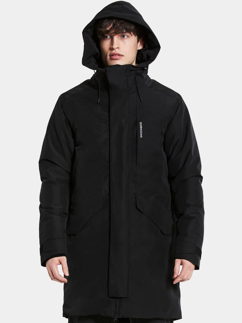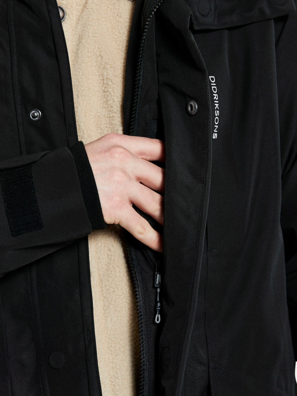 Kenny ist ein leicht gepolsterter Parka von Didriksons mit einem puristischen, schlichten Look. Dank einer besonderen Konstruktion mit versiegelten Nähten ist das Modell zu 100 % wind- und wasserdicht. Der Parka besteht aus weichem Polyester. Drei Fronttaschen mit Reißverschluss, zwei Innentaschen aus Mesh und eine Napoleontasche mit Reißverschluss sorgen für genug verstaumöglichkeiten. Die Ärmelabschlüsse mit Innenbündchen und die Kapuze lassen sich nach Bedarf verstellen. Ein Zwei-Wege-Frontreißverschluss sorgt für Flexibilität und optimale Belüftung. Eine Windschutzleiste mit Magnetknöpfen hält Kälte ab. Mit einem hohen Kragen und einer angeschnittenen, verstellbaren Kapuze schützt Kenny perfekt vor kaltem Wind. Das Logo- und Didriksons-Print sind reflektierend. Das Spinngefärbtes Futter spart Wasser, Energie und Chemikalien in der Produktion. Die Imprägnierung ist PFC-frei.
