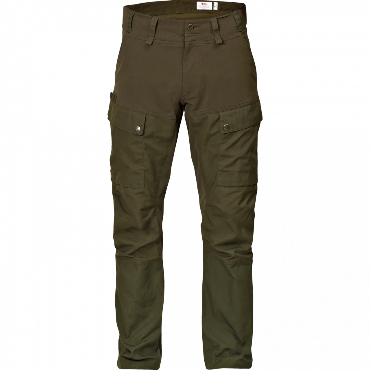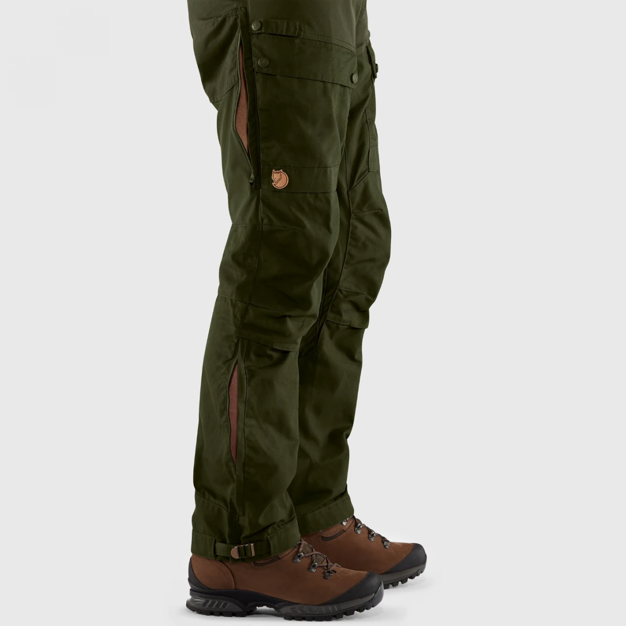 Eine gute erste Wahl für körperlich anstrengende Jagden wie die Vogeljagd, bei der viel Aktivität in unterschiedlichem Gelände nötig ist, oder für die Jagd mit Hunden. Belüftungsöffnungen mit Reißverschluss vom Knie bis zur Hüfte lassen übermäßige Wärme entweichen. Außerdem gibt es Reißverschlüsse an der Außenseite der Waden. Mit zwei großen Beintaschen, beide mit Klappen und Druckknöpfen – die linke hat einen Reißverschluss und ist innen mit einer Mesh-Tasche ausgestattet, die ein Handy oder Funkgerät aufnehmen kann. Zusätzlich gibt es zwei Eingrifftaschen und eine Messertasche.
