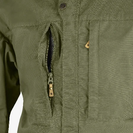 Schöne hüftlange Fjällräven Skogsö Outdoor-Jacke mit fester, regulierbarer Kapuze und verlängerter Rückenpartie. Ebenso bequem auf Wanderungen wie beim Radfahren von und zur Arbeit. Aus G-1000 Lite mit G-1000 Original an Schultern und Kapuze. Das Material ist wind- und wasserabweisend und außerdem atmungsaktiv.