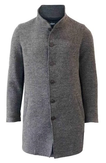ist ein stilvoller Herrenmantel aus 100% gefilzter Wolle. Mit Windschutzmaterial wird es zum perfekten Oberbekleidungsstück. Die Filzwolle verleiht einen robusten und eleganten Look. Nützlich für viele Gelegenheiten. So lange, dass es die Jacke bedeckt. Rohe Schnittkanten. Dieses Modell ist mit zwei Seitentaschen mit Reißverschluss und einer Innentasche ausgestattet, ebenfalls mit einem Reißverschluss.