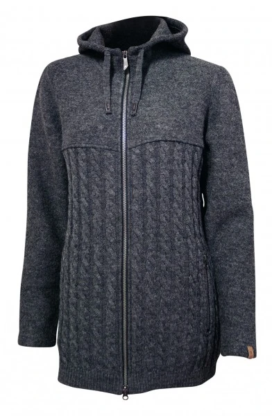 Die Helny Hood von Ivanhoe ist eine lange, warme Wolljacke für Damen, mit einem durchgehenden 2-Wege-Reißverschluss. Sie besitzt zwei seitliche Reißverschlusstaschen zum wärmen der Hände, oder verstauen von Kleinigkeiten und eine große Kapuze mit Kordellzug zum verstellen. Die Helny Hood ist dank des Strick-Design modisch und schick und dazu noch sehr bequem. Für den Alltag oder die Freizeit ist diese warme Wolljacke für Damen perfekt geeignet.