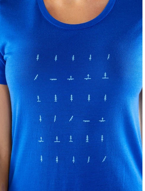 Unter Einsatz von Corespun-Technologie werden Merinofasern um einen Nylonkern gesponnen, um dem Stoff Robustheit und ein weiches Tragegefühl zu verleihen. Der weiche, offene Ausschnitt ist feminin und komfortabel, während versetzte Schulternähte Reibung verhindern, wenn du auf Reisen oder beim Wandern einen Rucksack trägst. Das grafische Motiv von Damon Watters ist abstrakt und dennoch naturinspiriert.