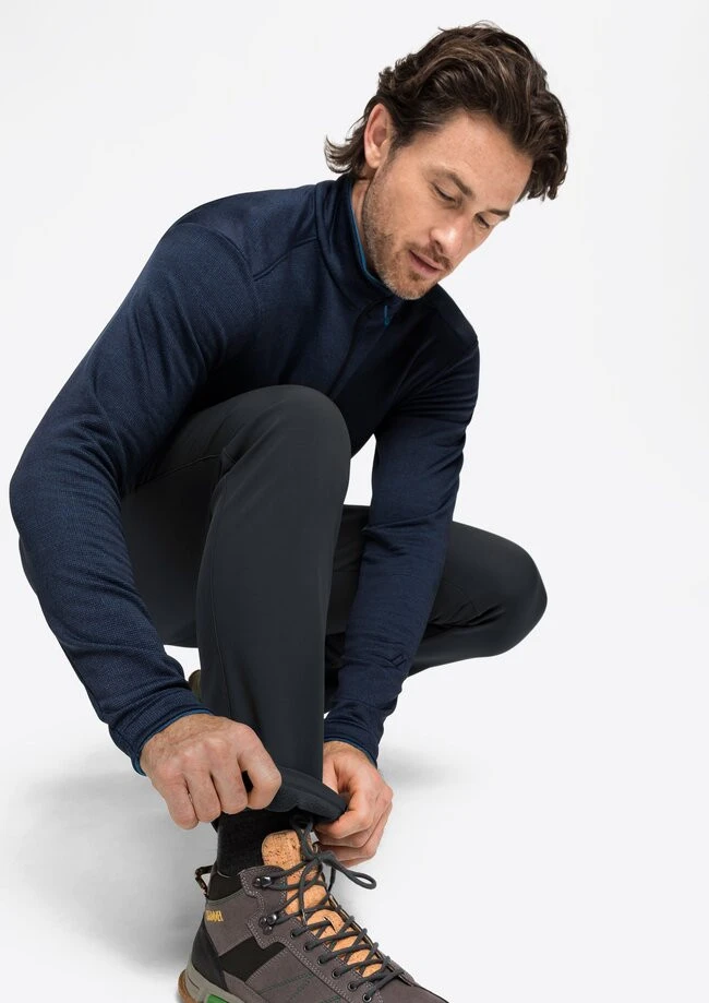 Für Wanderungen an windigen und kalten Tagen brauchst du eine Hiking-Hose, die verhindert, dass der eisige Wind dich auskühlt. Dafür haben wir unsere Softshellhose PERLIT M mit stormprotec ausgestattet: Die integrierte Membrane macht das Gewebe der Hiking-Hose winddicht, annähernd wasserdicht und atmungsaktiv. Hinzu kommt eine wasserabweisende Imprägnierung, die PFC-frei und somit besonders umweltfreundlich ist. Die weiche Fleece-Innenseite der PERLIT M hält deine Beine beim Wandern warm – und leitet Feuchtigkeit zuverlässig nach außen, falls es auf der Tour mal etwas anstrengender wird.