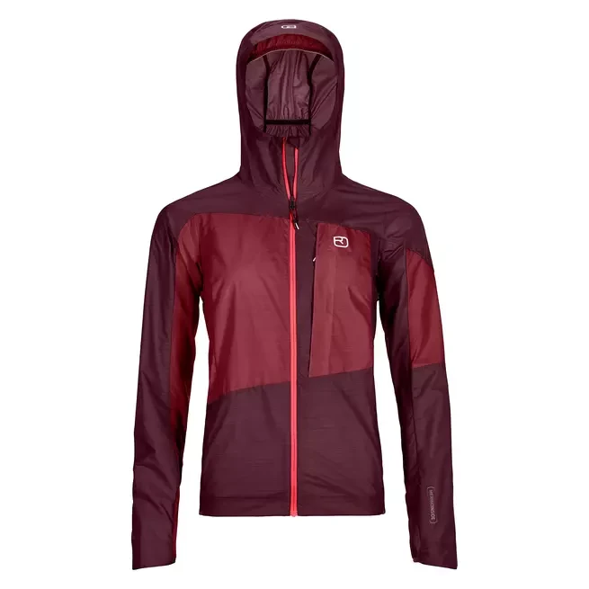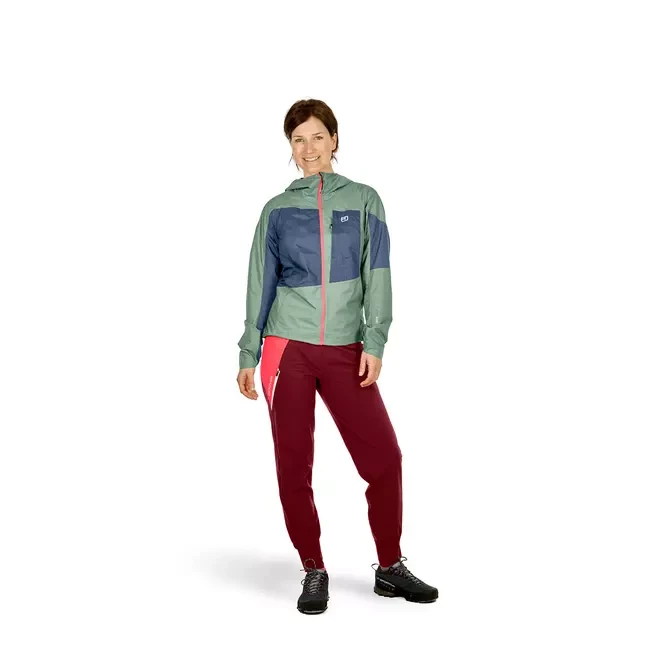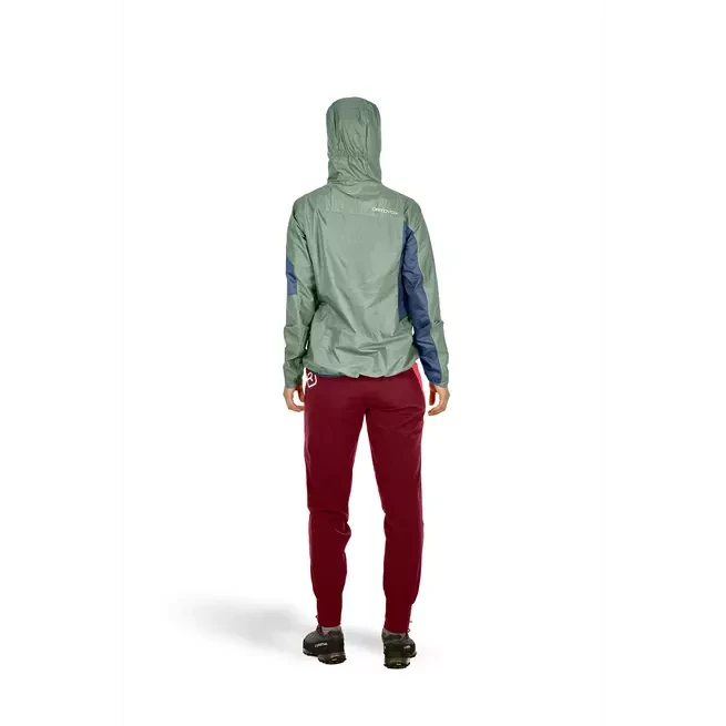 Der Ortovox Merino Windbreaker für Damen überzeugt durch sein extrem niedriges Gewicht und das Material aus mehr als 50 Prozent feinen Merinofasern. Dieses macht den Windbreaker zu einer winddichten, feuchtigkeits- und temperaturregulierenden, sowie geruchsneutralisierenden Jacke, ohne dabei auf Komfort zu verzichten. Die hohe Qualität dieser leichten Damenjacke spiegelt sich besonders in ihrer Verarbeitung wieder. Saum und Bündchen sind hierbei elastisch und sorgen dafür, dass die Jacke schön angenehm abschließt. Die praktische Brusttasche bietet viel Platz für eine Karte oder Ähnliches und kann als Packsack für die gesammte Jacke verwendet werden. Mit der integrierten Schlaufe kann sie dann ganz einfach an einem Rucksack fixiert werden. All das macht diesen hochwerigen Damen–Windbreaker von Ortovox zum perfekten Begleiter für die nächste Klettertour.