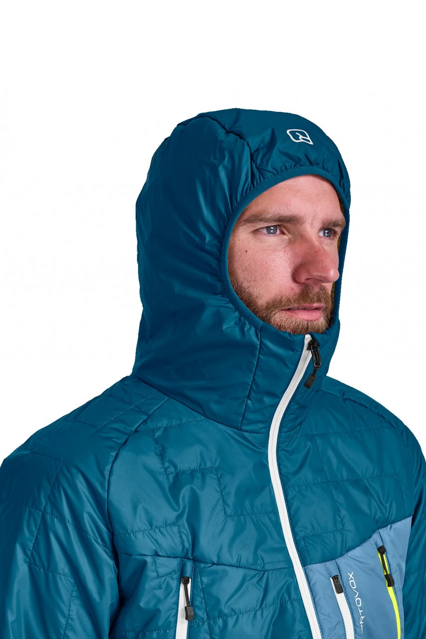 Die Swisswool Piz Boè Jacket für Männer von Ortovox ist perfekt für anspruchsvolle Skitourengeher, für die weniger mehr ist: weniger Gewicht, weniger Packmaß, dafür mehr Performance. Die robuste Außenhaut aus Pertex Quantum macht die leichte Isolations-Jacke extrem winddicht, abriebfest und stark wasserabweisend, wobei der versteppte Oberstoff zudem eine stylische Pixeloptik bietet. Innen isolieren 60 g/m2 Swisswool nicht nur sehr gut vor Kälte, die Fasern wirken zudem feuchtigkeitsregulierend und bieten eine hohe Atmungsaktivität, da sie bis zu 35% ihres Eigengewichts an Feuchtigkeit aufnehmen können. Dank ihrem athletischen Schnitt und Einsätzen aus elastischem Merino Naturetec Light unter den Armen, macht die Jacke auch in anspruchsvollem Gelände jede Bewegung mit.