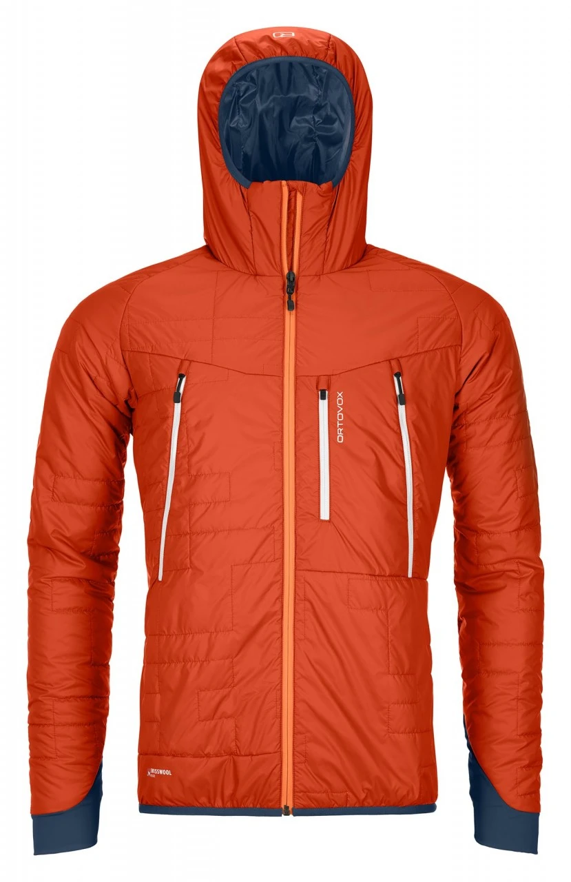 Die eng geschnittene und elastisch abschließende Kapuze sowie elastische Saum- und Ärmelabschlüsse halten Wind und Kälte selbst auf eisigen Gipfeln draußen. In den beiden geräumigen Fronttaschen und der Brusttasche finden wichtige Dinge ihren Platz, die auch mit Rucksack oder Gurt zugänglich bleiben sollen. Die Swisswool Piz Boè Jacket ist somit der ideale Begleiter auf anspruchsvollen Touren, wo wenig Gewicht und maximale Performance gefragt sind.