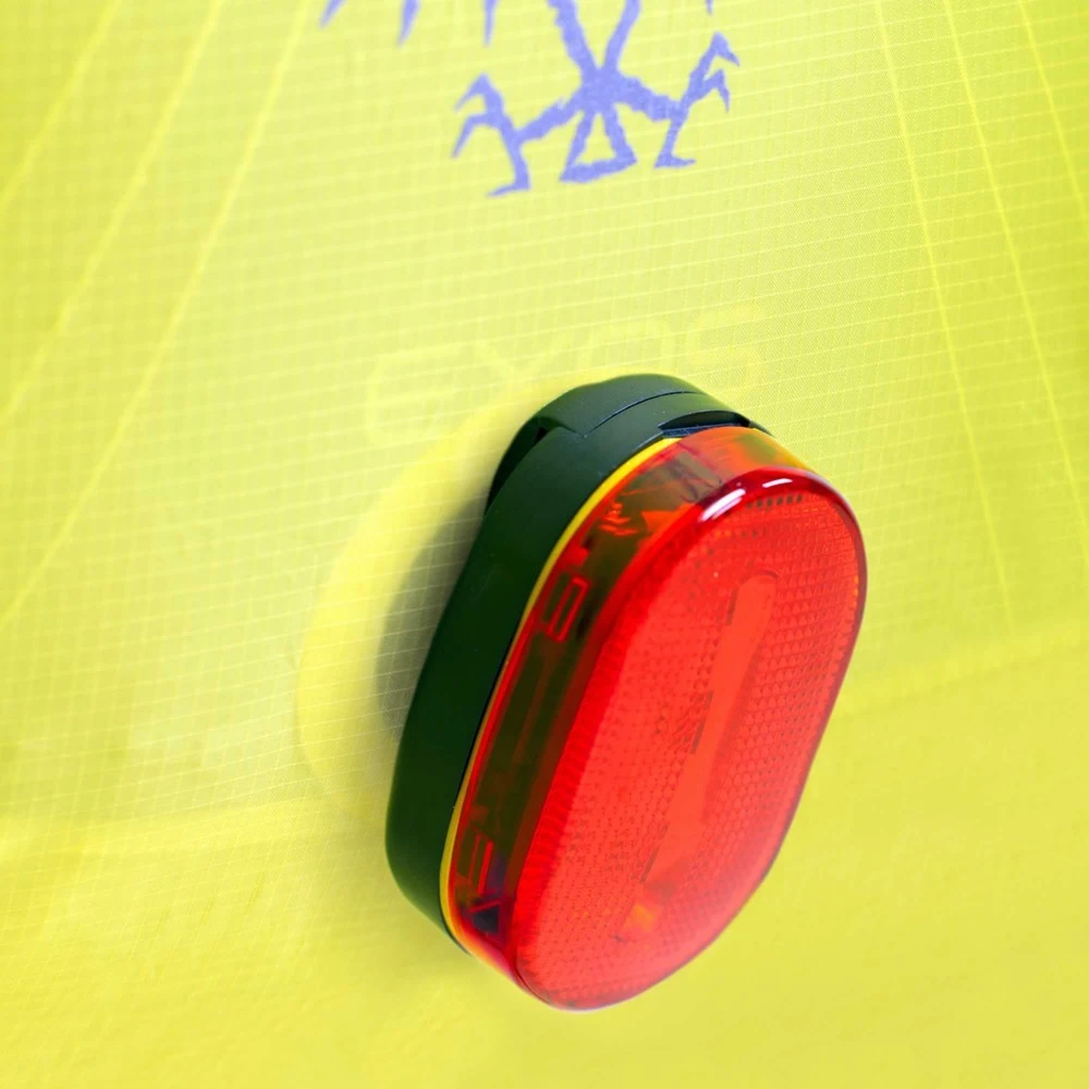 Das Ultralight High Vis Raincover von Osprey kann schnell in der integrierten Tasche verstaut werden und nimmt so nicht mehr Platz als ein Tennisball in Anspruch. Die reflektierenden Grafiken, Leuchtfarbe und die Blinkleuchten Halterung sorgen zudem dafür, dass du selbst in den schlimmsten Situationen gut sichtbar bist.