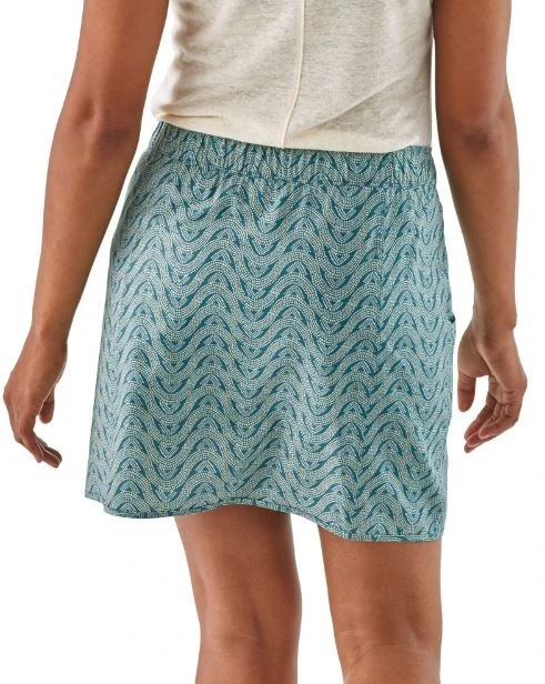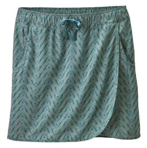 Der äußere Rock besteht aus einem reisefreundlichen Material aus 91% Recycling-Polyester und 9% Elastan mit DWR (durable water repellent) Imprägnierung und 50+ UPF UV-Schutz, das super-elastisch und knitterfest ist und sehr schnell trocknet. Der Bund mit Außenzugkordel schafft eine individuelle Passform. In zwei Reißverschlusstaschen vorn haben Pass und Smartphone Platz; eine verborgene Innentasche ist perfekt für Bargeld und Schlüssel. Die Front mit Wickeloptik und ein Schlitz an der Seite lassen beim Wandern Raum für weite Schritte. Die integrierte Jersey-Shorts aus 88% Polyester und 12% Elastan hat eine Beinlänge von 10 cm; der Skort hat einen gerundeten Saum, der über dem Knie abschließt.