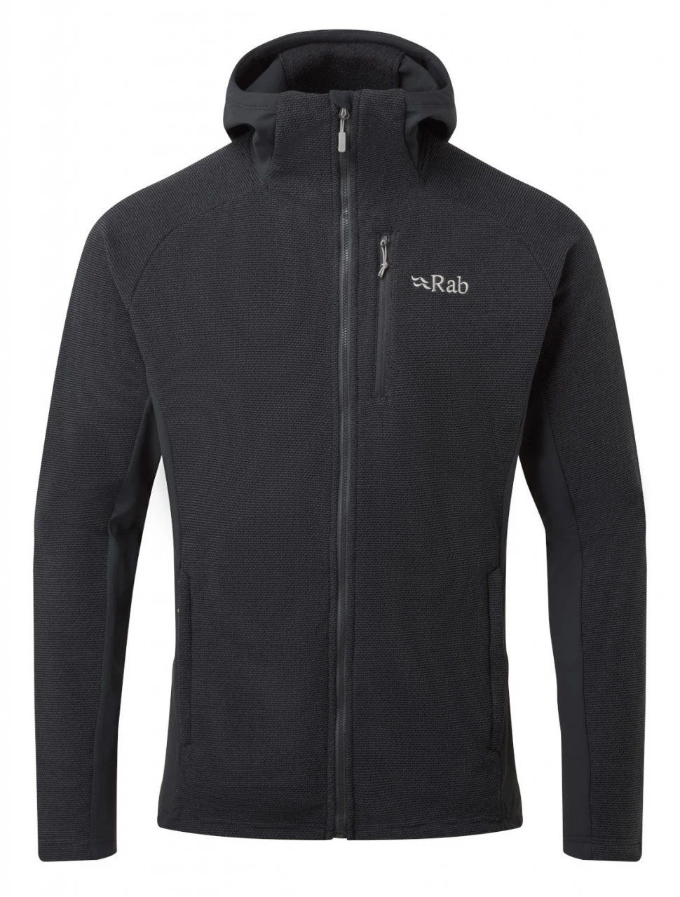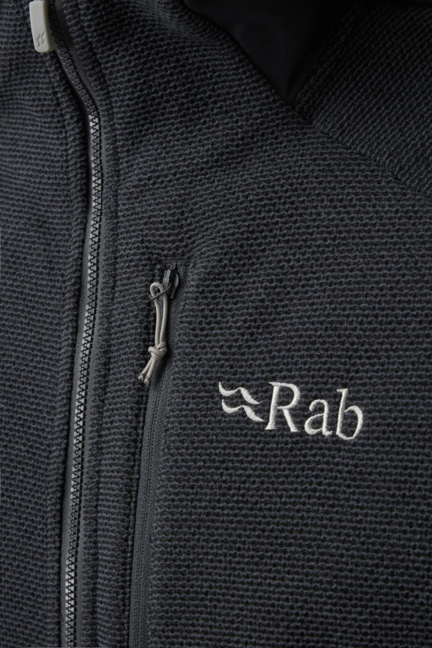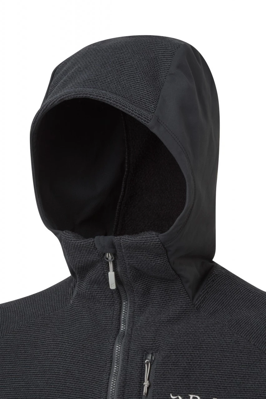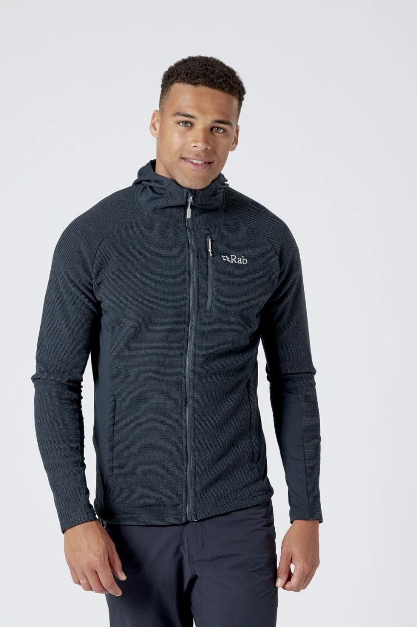 Der Herren – Capacitor Hoodie – von Rab besteht komplett aus recyceltem und gebürstetem Polyester und ist in einer schöner Stricktextur gefertigt. Er findet genau die richtige Balance zwischen Wärme und Atmungsaktivität in verschidensten Bergdisziplinen und lässt sich auch im Alltag tragen. Der Hoodie besitzt Stretcheinsätze aus Thermic-Fleece an den Seiten, den Ärmeln und der Kapuze, welche die Bewegungsfreiheit erhöhen und für eine schlankere und ästhetischere Passform sorgen. Er ist ein idealer Midlayer der sich zwischen einem feuchtigkeitsableitendem T-Shirt und einer wasserfesten Shelljacke tragen lässt. Die unauffäligen Seitentaschen bieten zusätzlichen Stauraum oder schutz für die Hände und die helmkompatible Kapuze sorgt für zusätzliche Vielseitigkeit.